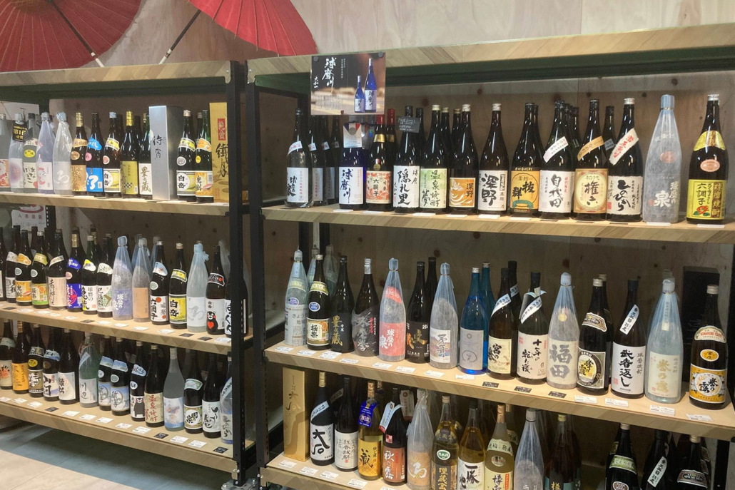 히토요시·구마 지역의 27개 양조장의 구마 소주가 모두 갖추어진 가게